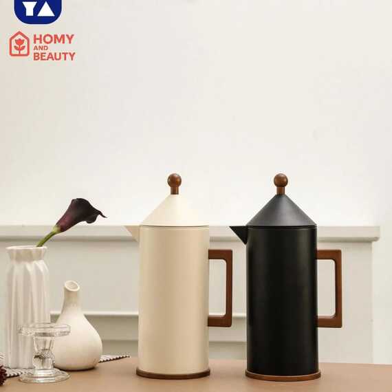 ترمس 1000ml بتصميم أنيق ولمسة خشب دافئة، يحافظ على حرارة قهوتك ويضيف فخامة لأي طاولة 🖤🤍