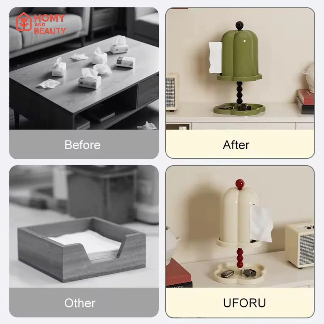 جمعت لك الأناقة والترتيب بقطعة واحدة! ستاند مناديل مودرن مع قاعدة تخزين لإكسسواراتك اليومية.