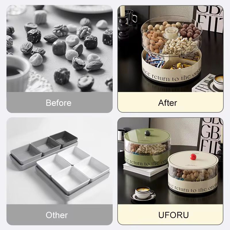 صحن تقديم عملي وأنيق، مثالي لتقديم المكسرات، التسالي، أو الحلويات بطريقة مرتبة وجذابة. يأتي بتصميم دائري مودرن يناسب كل بيت، ومزود بغطاء للحفاظ على نظافة الطعام وحمايته من الغبار.